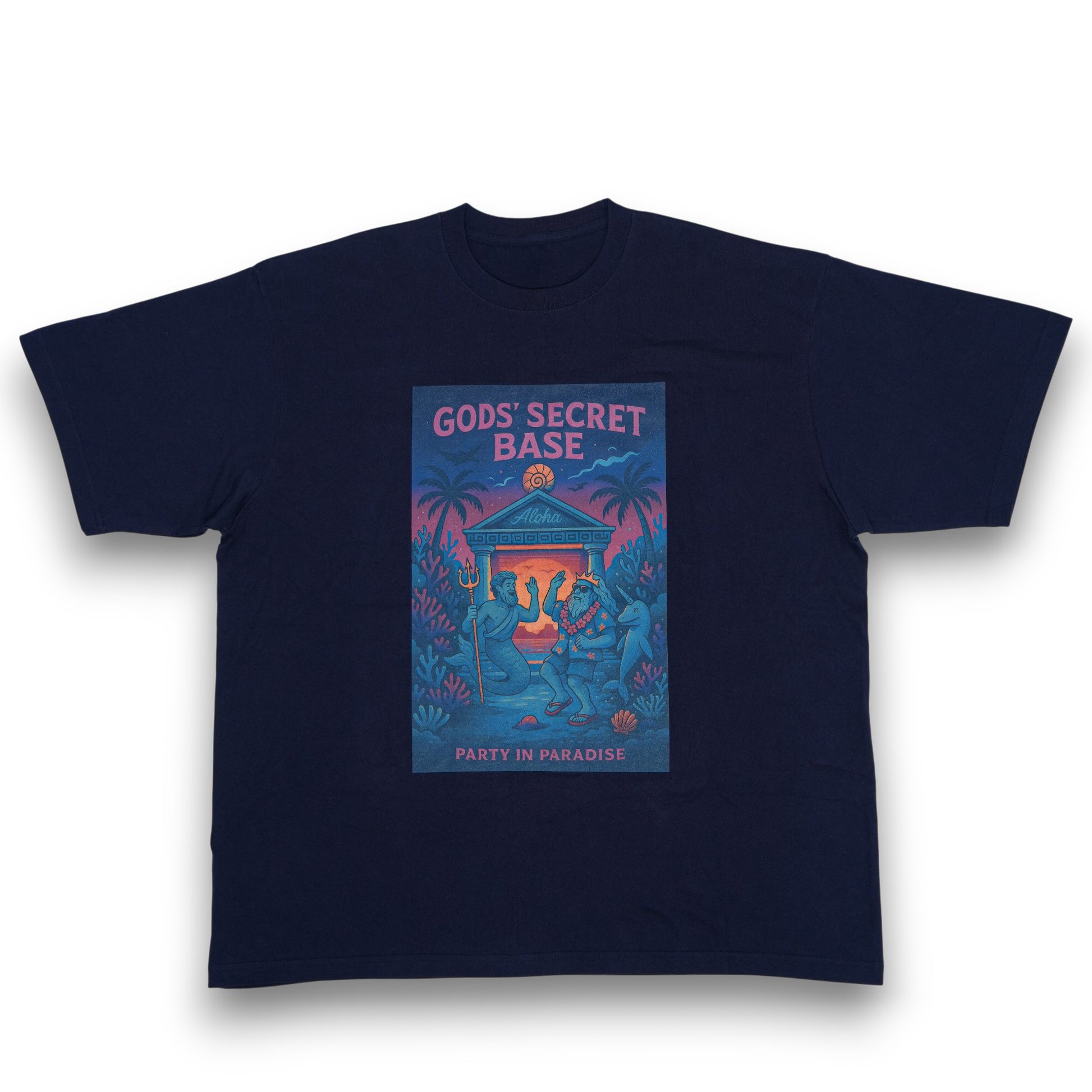 • フロントに「GODS’ SECRET BASE」グラフィックプリント
